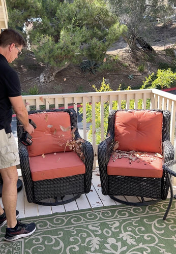 Watch homeowners tackle leaf piles, wet decks, dusty garages—all with one compact blower.